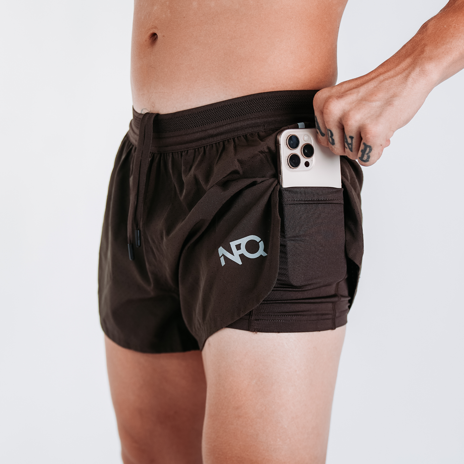 The only pockets we've left on these shorts are stash pockets: one at the waist and one on each leg of the liner. The waist stash pocket is large enough for energy gels or car keys and it's ideal for training runs and race day.